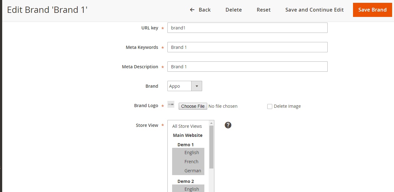 Example: You can create new page brand in Admin Panel > Content > Pages > my_brand_page. This page you can create content, description for this brand ...etc