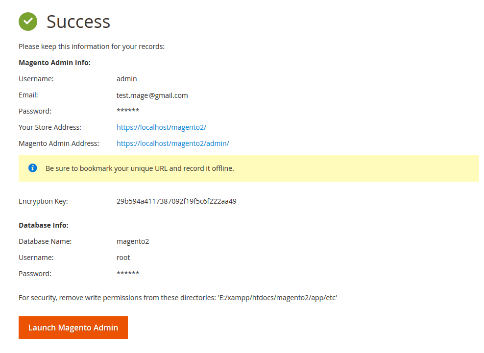 Wait till it finishes the Installation process. Once installed you will get success screen like following. Go to Backend and Frontend.