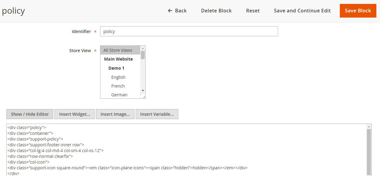 General information: Allows you can change Title, Identifier, Enable/Disable the Slider