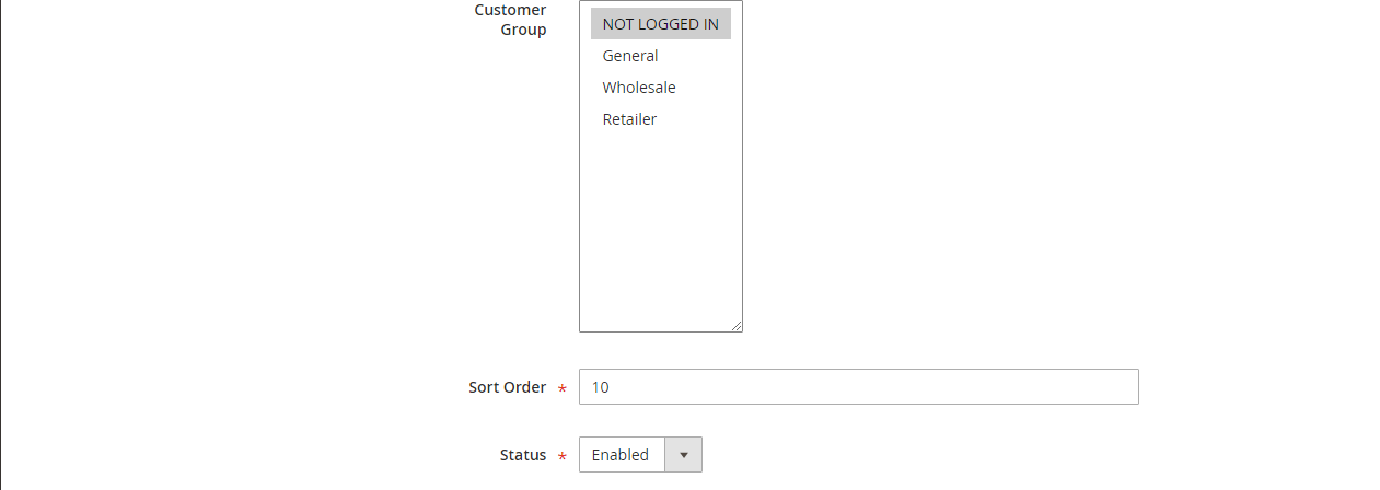 - Status: Select Enable/Disable for turning on/off the size chart rule.