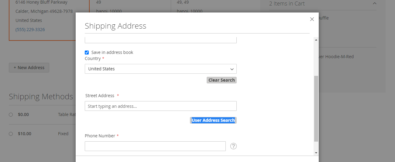 If you are already logged in, click on "+ New Address" and then select the country you want to search, then enter the address you want to search in the Street Address section.