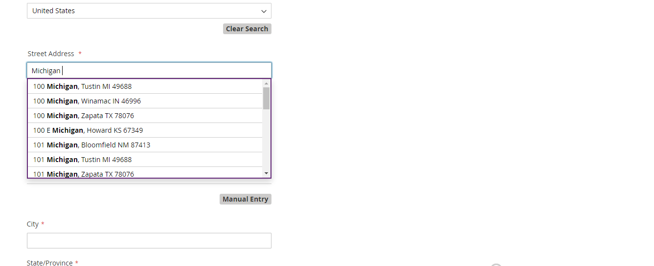 If you are not logged in, select the country you want to search for and then enter the address you want to search for in the Street Address section.