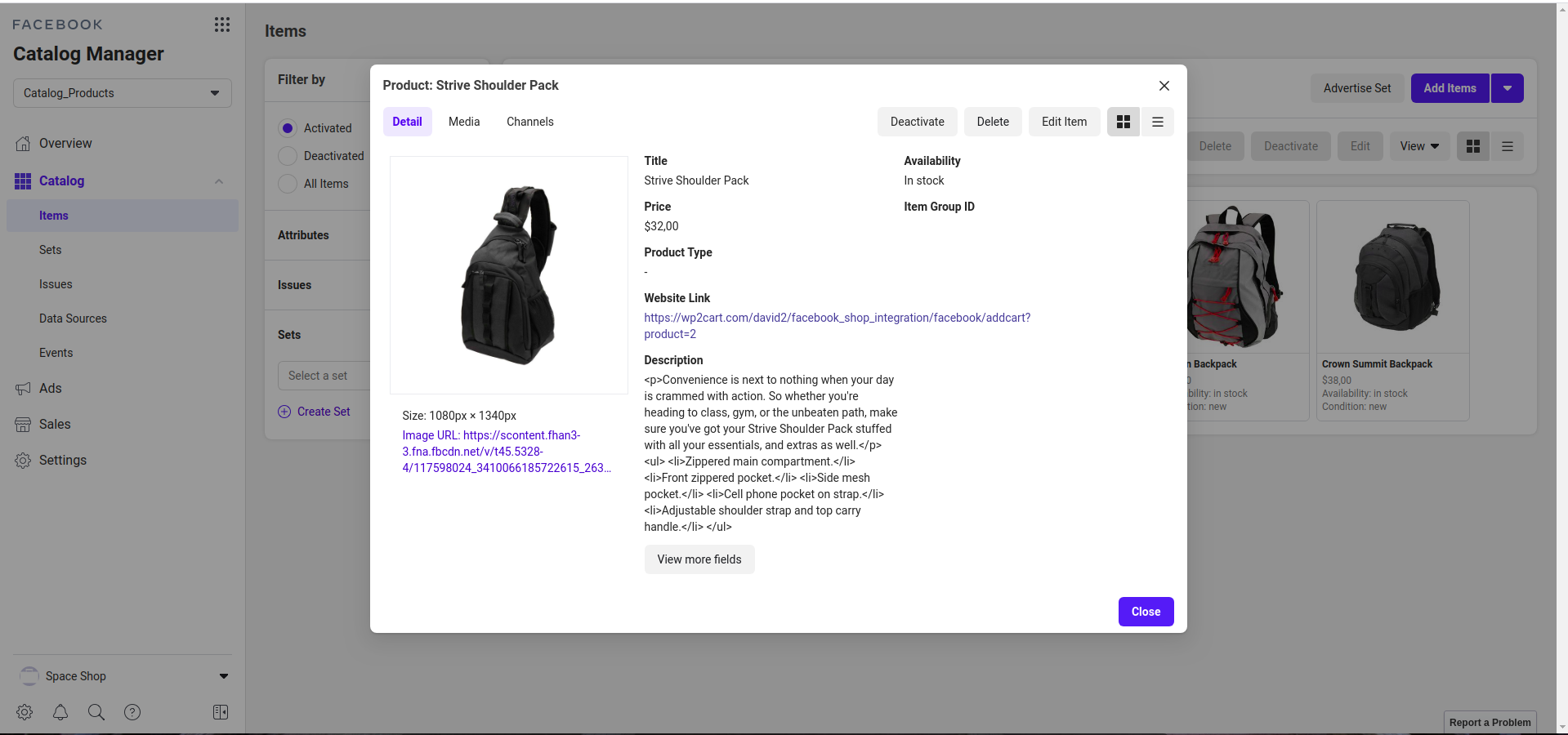 Step 7: Product details in facebook shop.