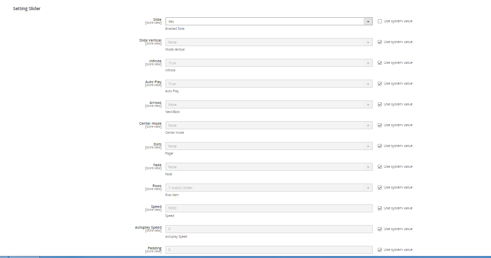- Slide: Turn true to enable the slider and false to disable the slide