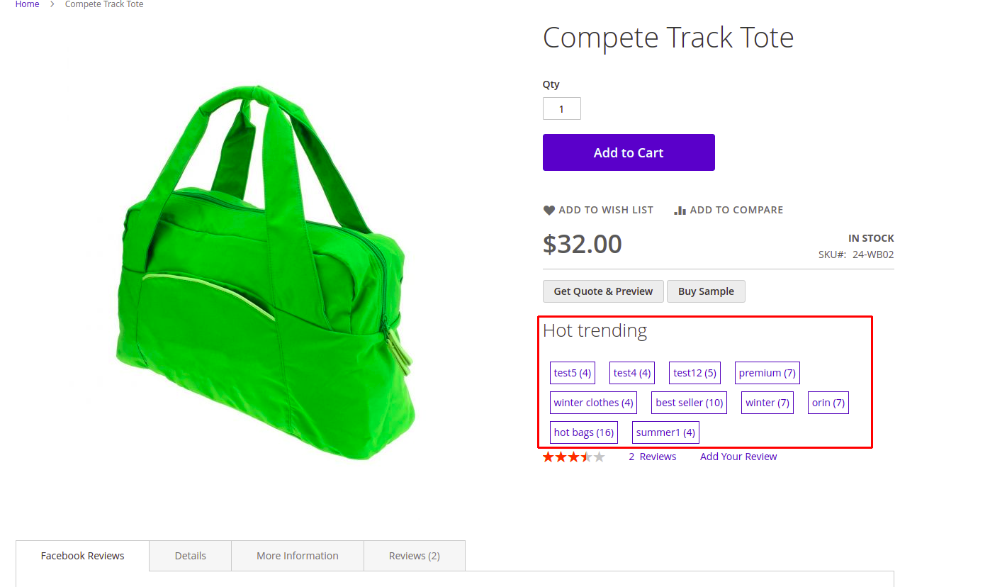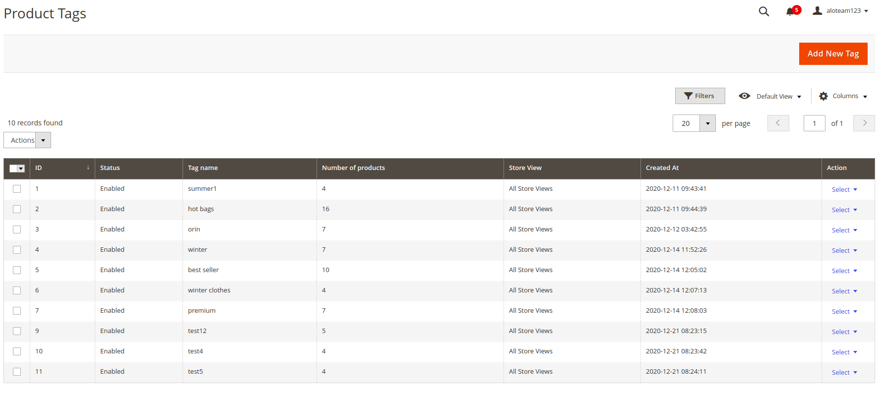 Login to Magento Admin > Magepow > Product Tags => Click on Add New Tag to create new content and information for the tag.