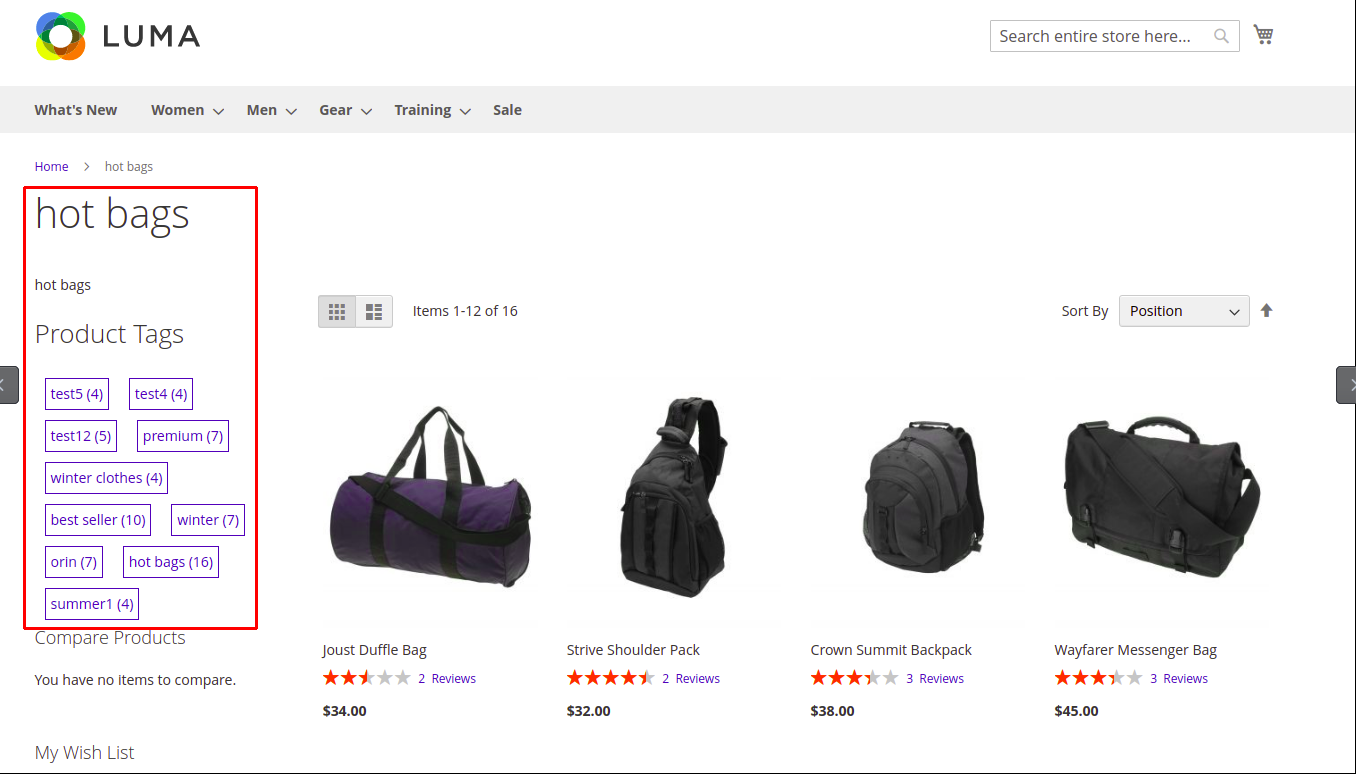 Click the tabs on the sidebar, in product details, or in the widgets section. Will display a tab containing the selected products in that tab.