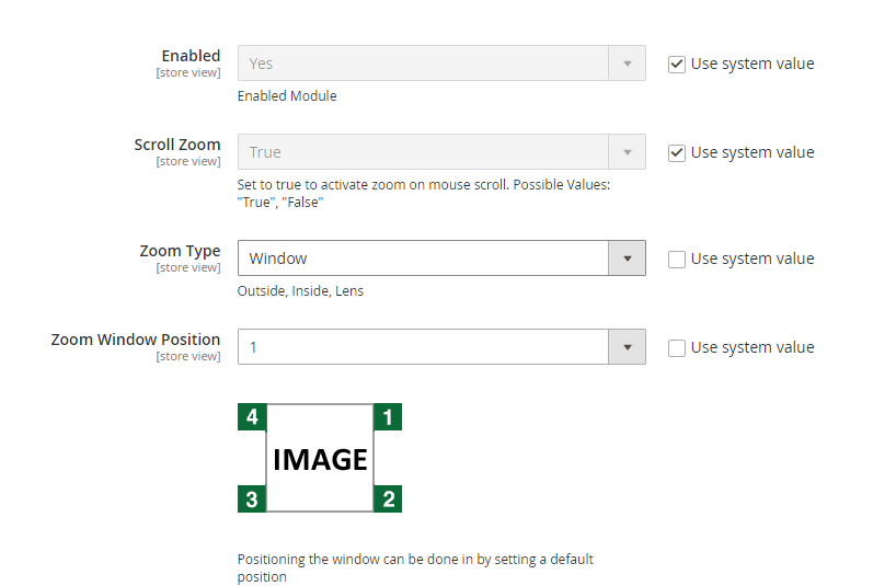 To Enable/DisableMagepow Product Zoom Extension: Go to Admin Panel > Stores > Settings > Configuration > Magepow > Product Zoom. Then, select Yes to Enable module/No to Disable the module