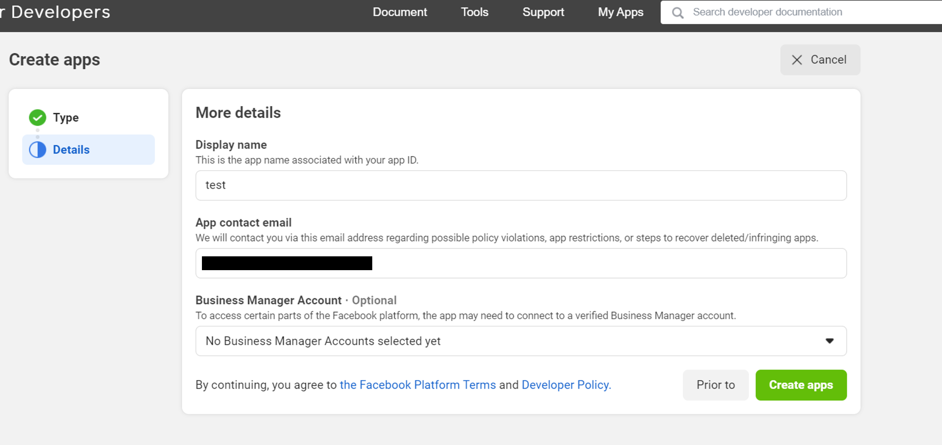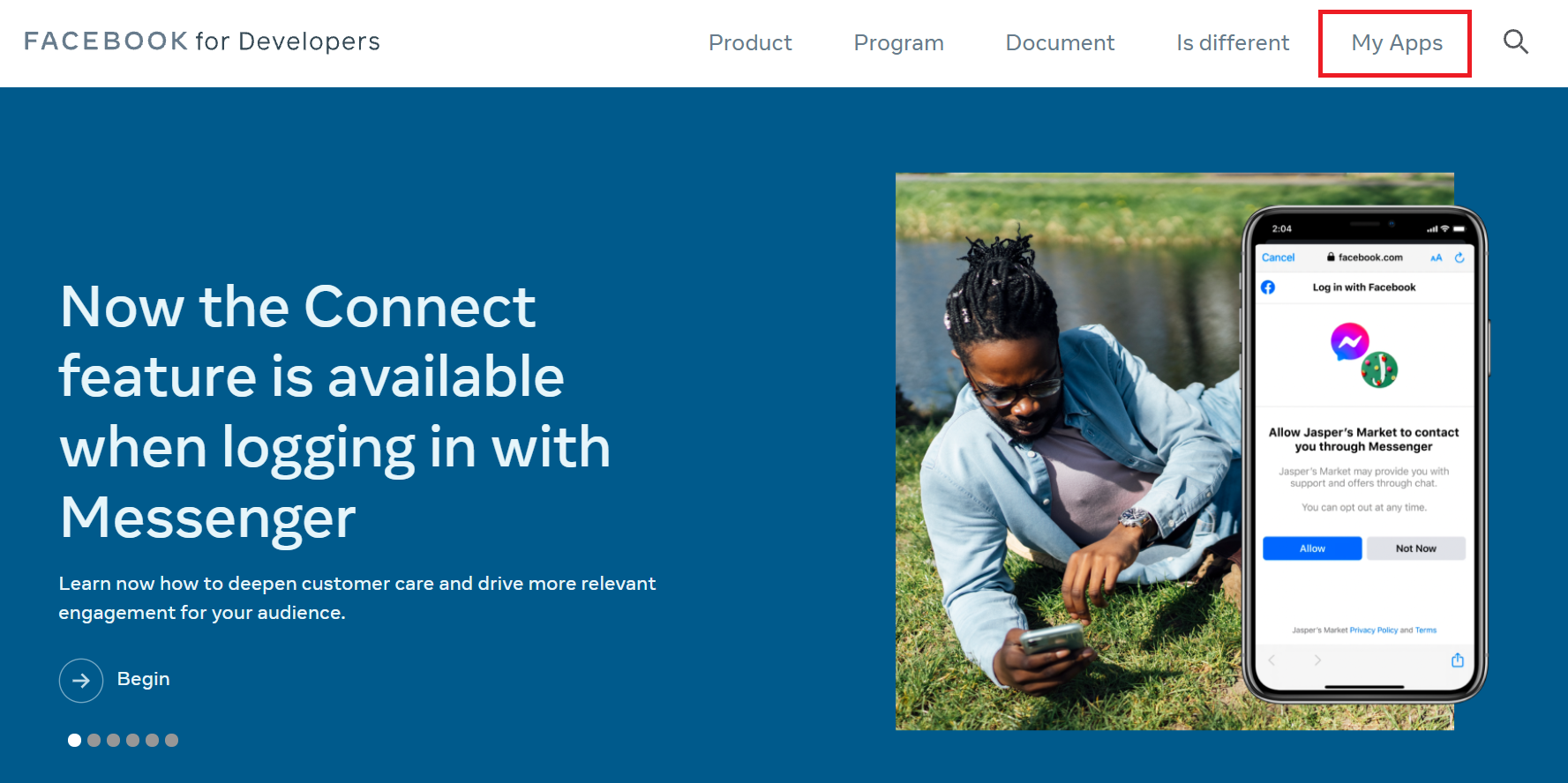 Login Facebook or create a new Facebook account. After that, click on My Apps from the Apps menu at the top
