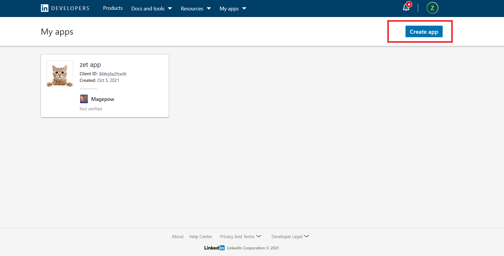 Login LinkedIn or create a new LinkedIn account. After that, click on Create app