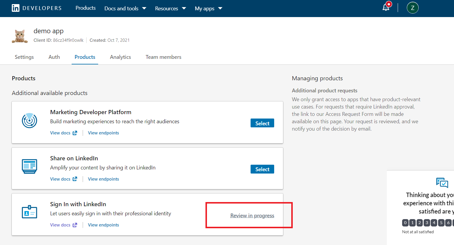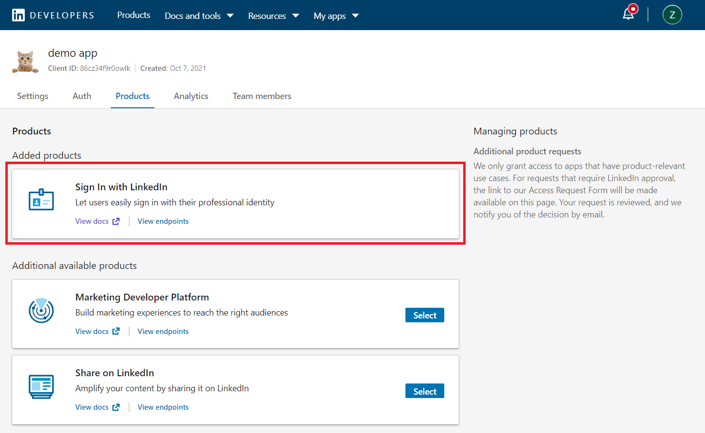 Wait about 3 minutes then refresh the page, you will see Sign In with LinkedIn are in Added products now