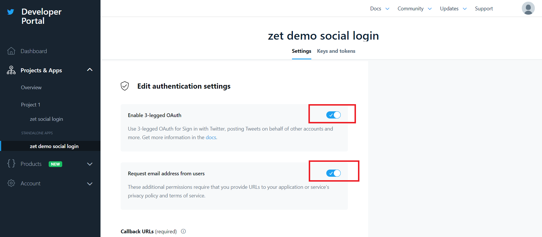 Turn on both Enable 3-legged OAuth and Request email address from users