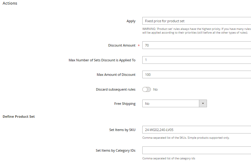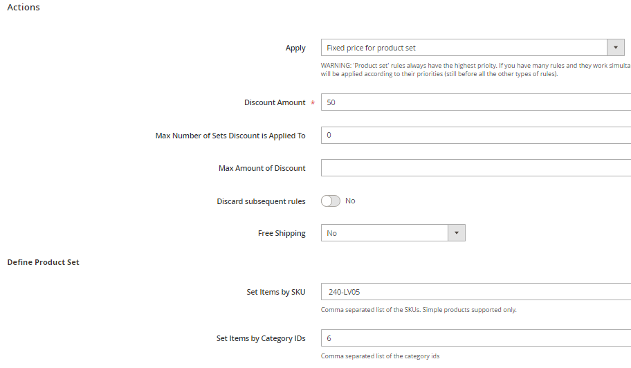 Discard subsequent rules - enable this option to stop other rules with lower priorities if this rule is applied. We don't need this for our promotions, so we set to 'No'.
