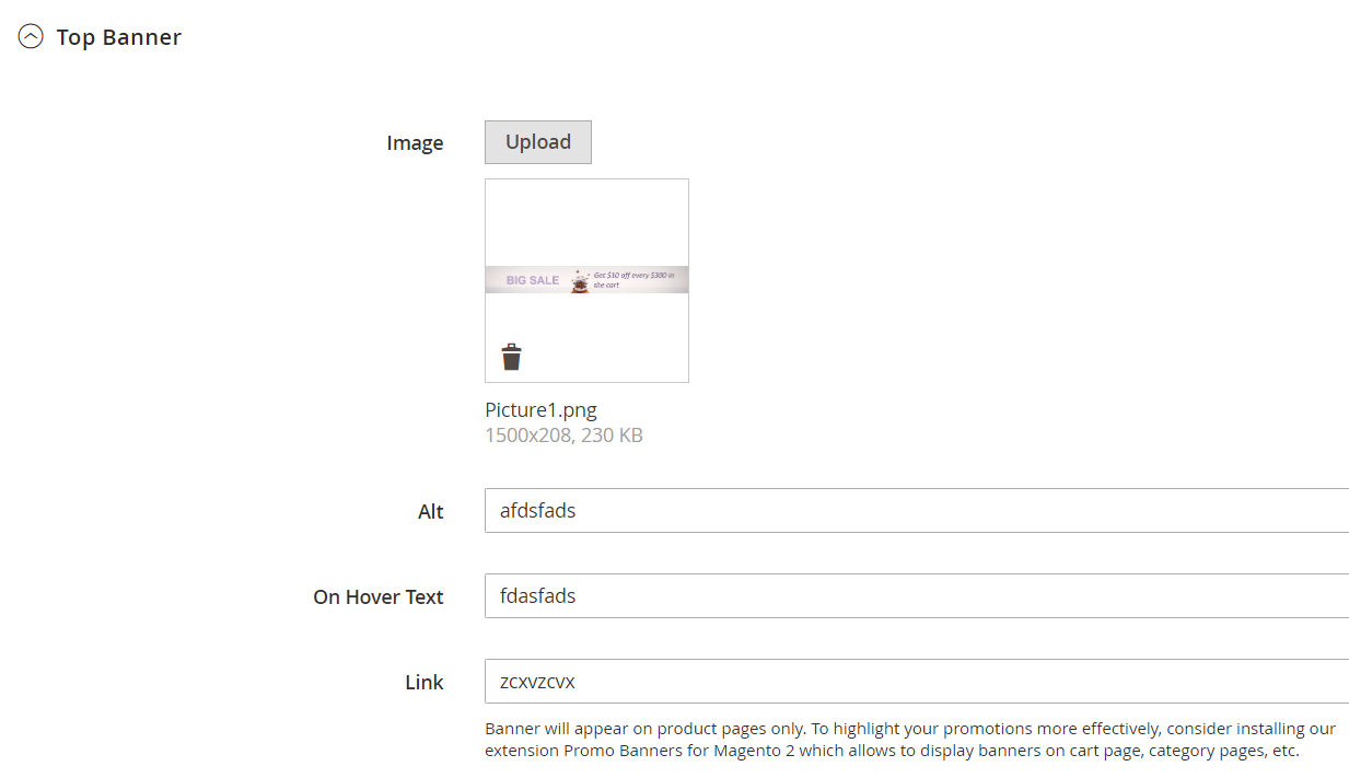 At first, specify for which products the banners/labels should be shown. You can choose to display them for all products, for particular product categories or only for special products.