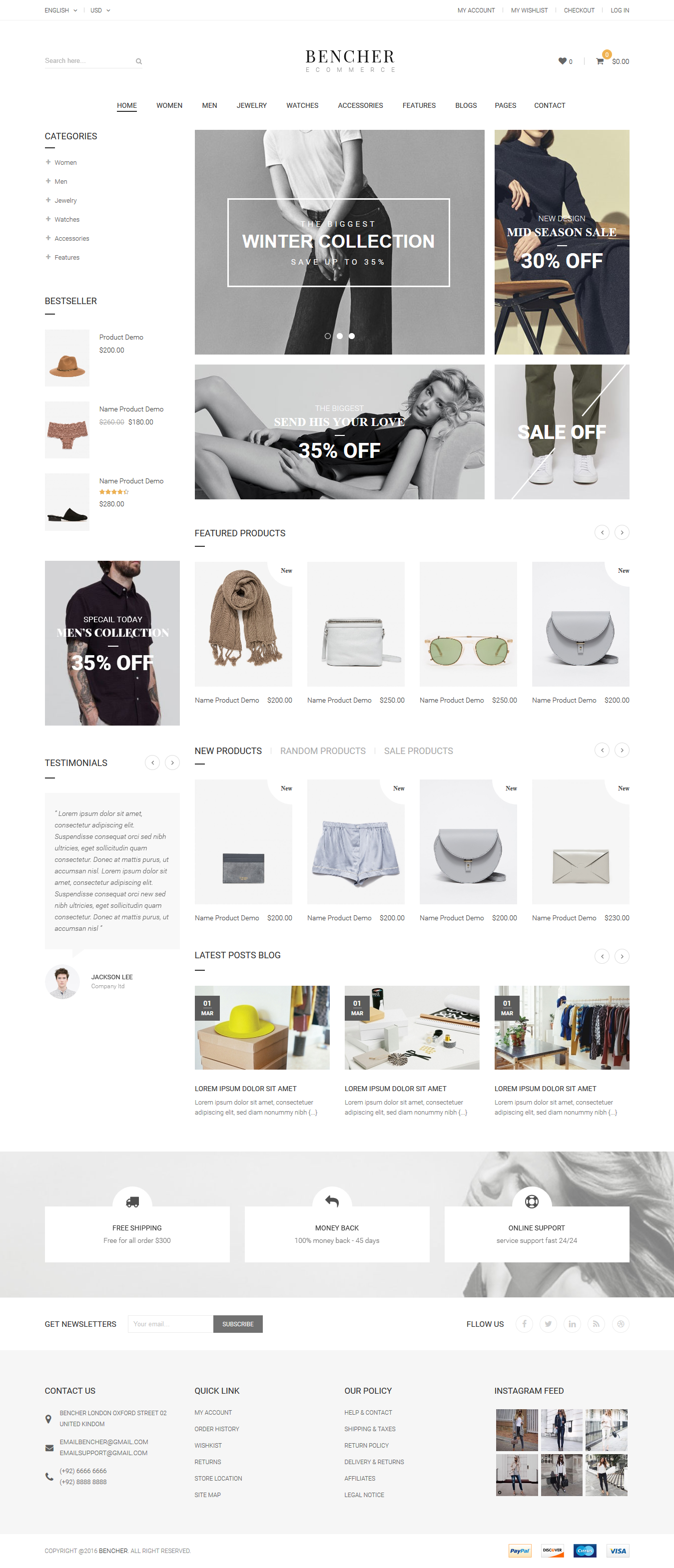 - Positions all block static (Admin > CONTENT > Block ) and Modules ( Admin > Magiccart ) in homepage.