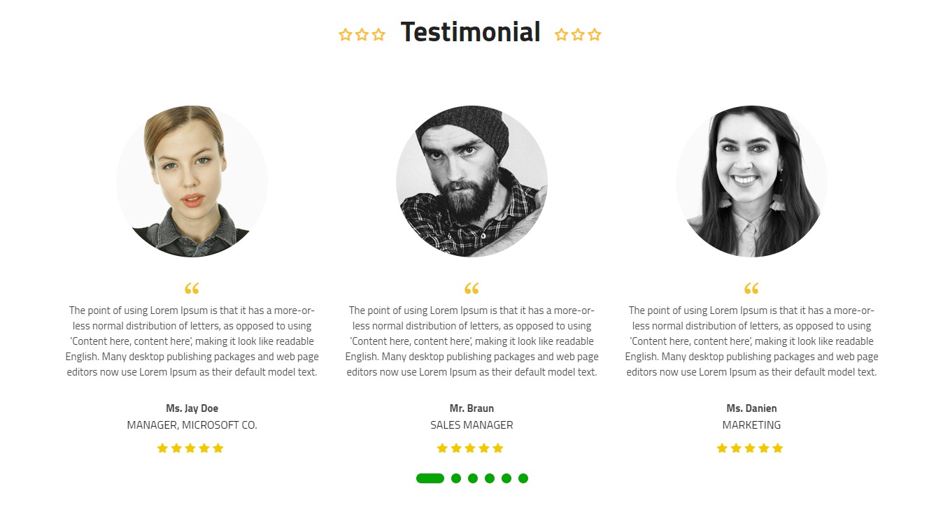 "Setting Responsive": Setting testimonial responsive with different Screens.