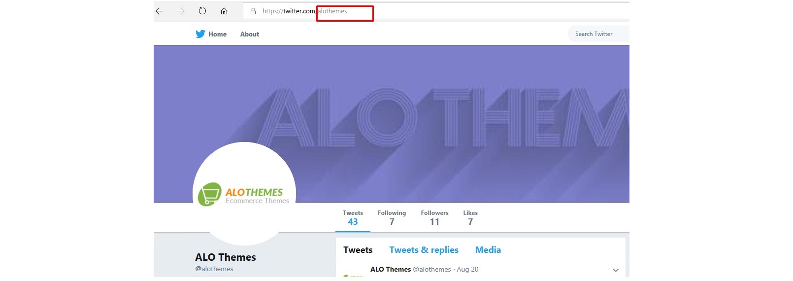 Go to Admin > Magiccart > ALO themes > Configuration > Social Profile > Twitter as image below
