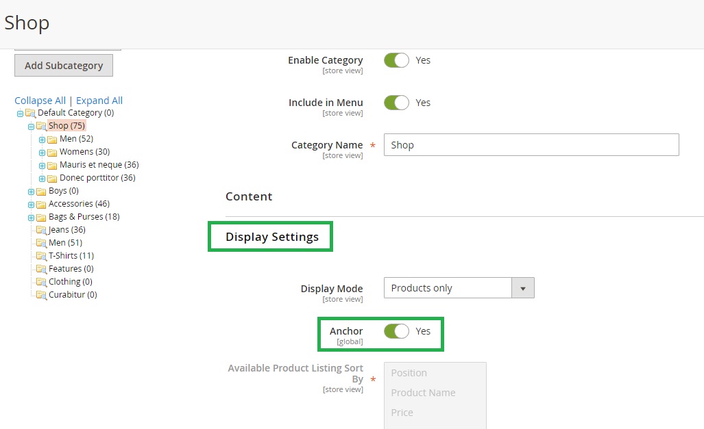 Fill in all the required fields. Especialy set Is Active and Include in Navigation Menu fields to Yes, and click Save Category:
