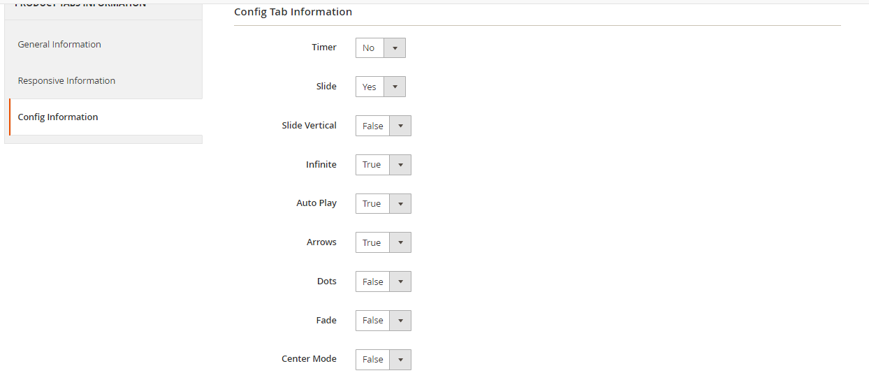 General information: Allows you can change Title, Identifier, Enable/Disable the Slider