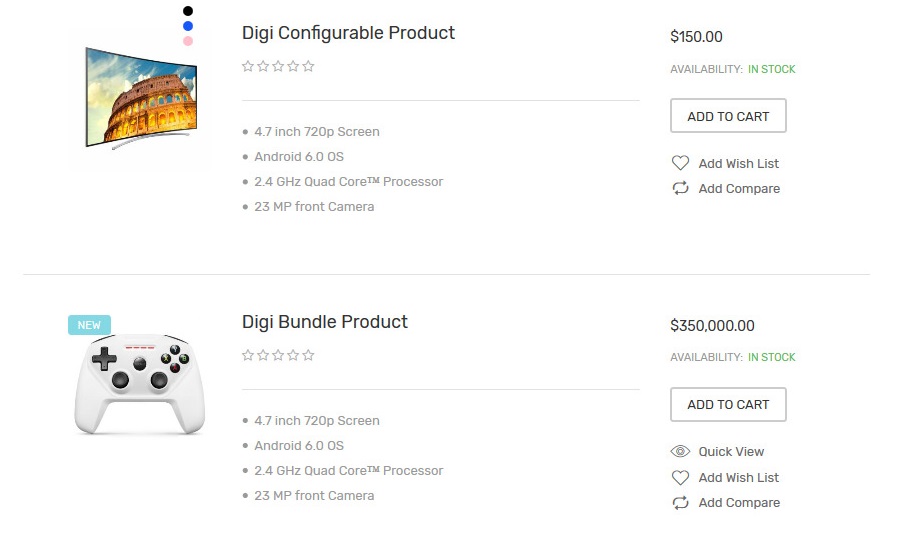 text is click able and shows drop-downbox with quantities of all products associated with that product.