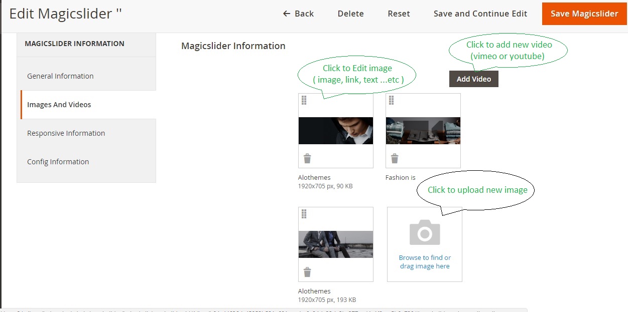 You can add or edit slider in Admin Panel > Magic Slider > Slider