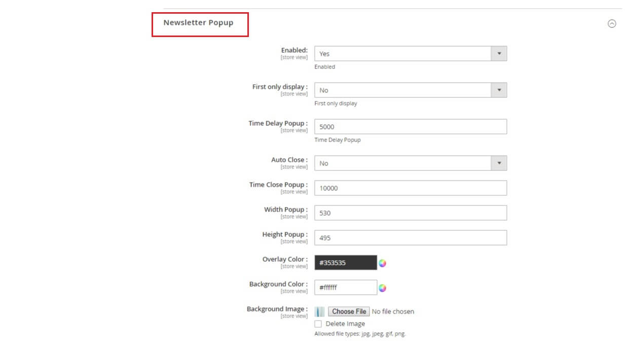 General information: Allows you can change Title, Identifier, Enable/Disable the Slider