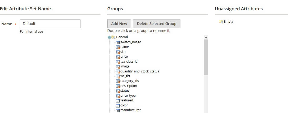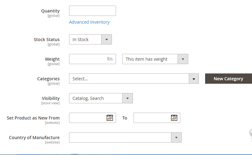 To edit existing attributes, go to STORES > Attributes> Product and select an attribute from the list.To create a new attribute,click Add New Attribute button.There are many types of attributes which you can create,one of the most useful is a dropdown attribute which lets you define a list of values that will be available when creating new products.