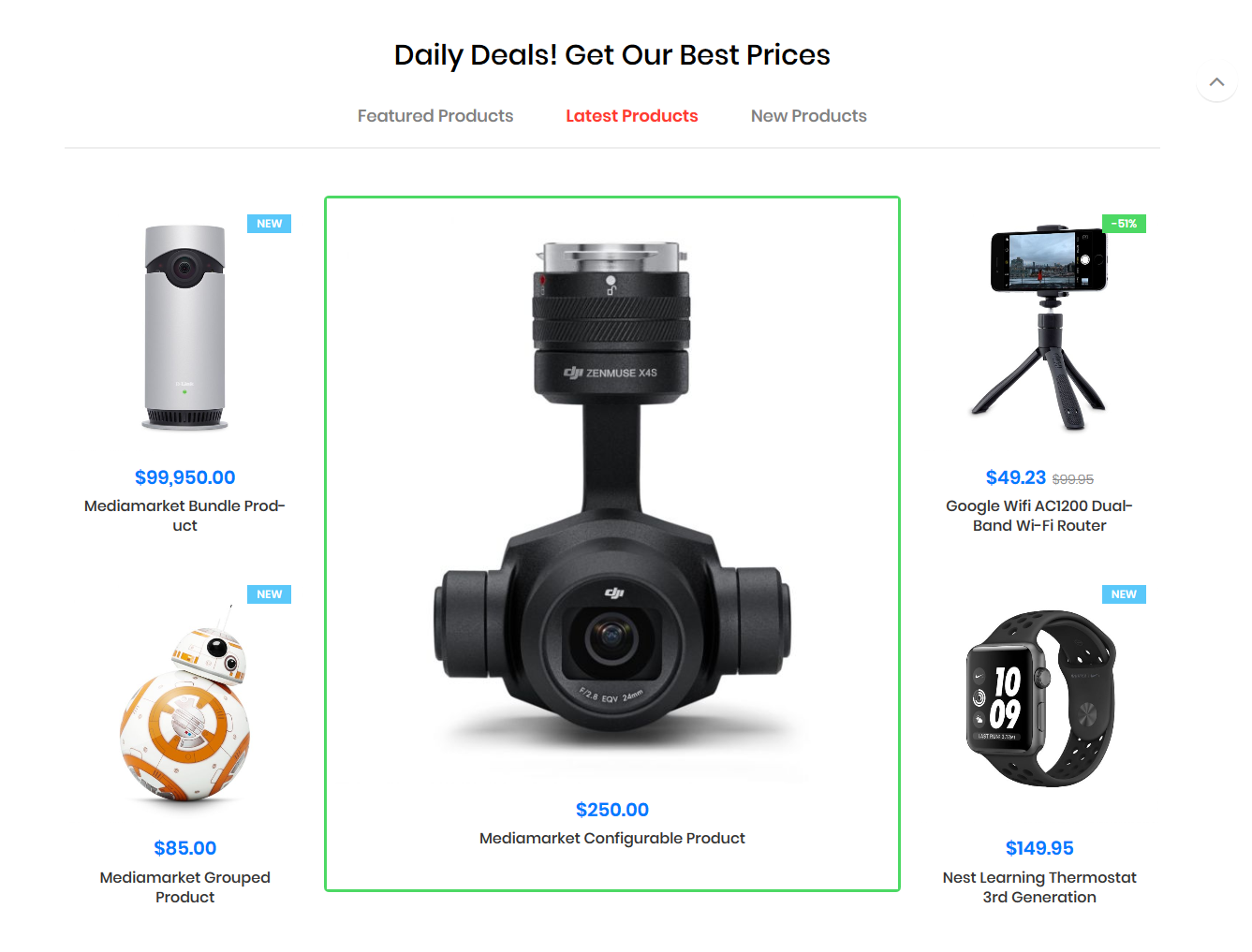 Catalog >Products > Edit >General >Featured Product >Yes > as Config as image below.