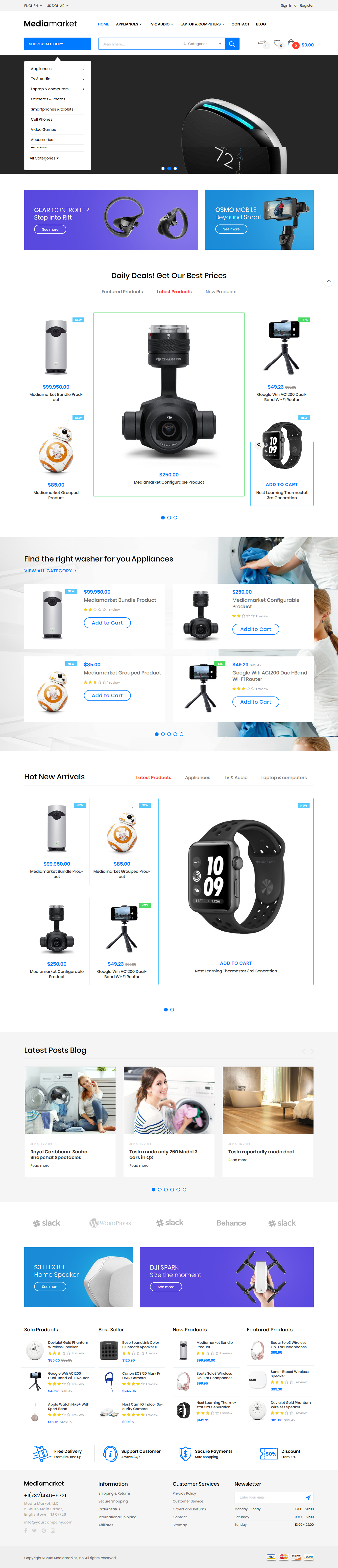 - Positions all block static (Admin > CONTENT > Block ) and Modules ( Admin > Magiccart ) in homepage.