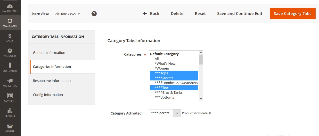 Magiccart >Magic Product > Categories >Add New Category Tabs > set Config as image below.