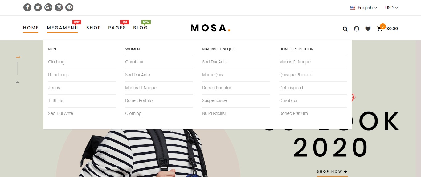 You can log in Admin > Magiccart > Magic Menu > Menu. It will look like this: