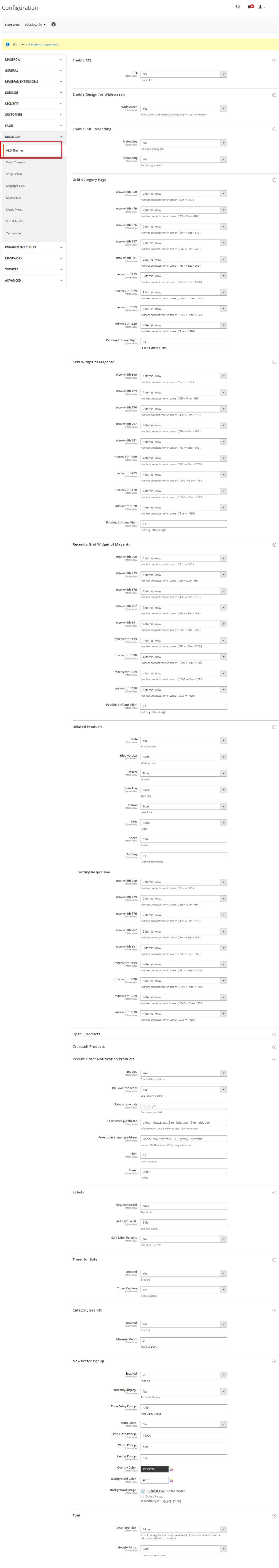 The following chapter describes some of the basic Magento settings and features. Please note that as authors of this theme we provide support only for the issues related strictly to the theme. Support for Magento configuration/ installation/ maintenance etc. is beyond the scope of our support. This chapter should be only treated as a starting point, more information about Magento can be found in Magento documentation: Magento help