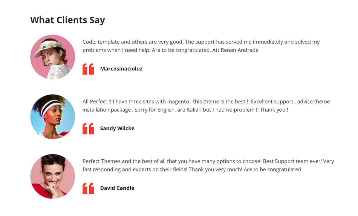 To manage Testimonials, please log in: Admin > Magiccart > Testimonial. It might look like this: