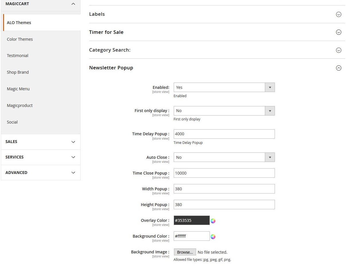You can config in STORES > Configuration > ALO Themes > Newsletter Popup