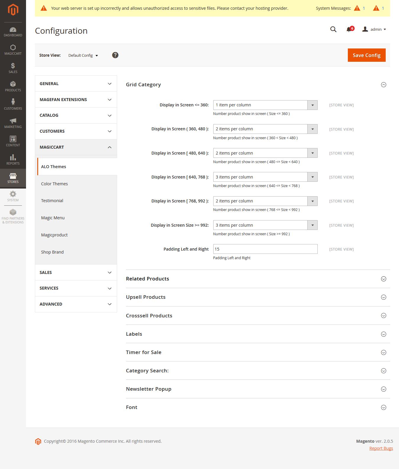 3. Go to Magento Admin: Admin > Magiccart> ALO Theme > Import