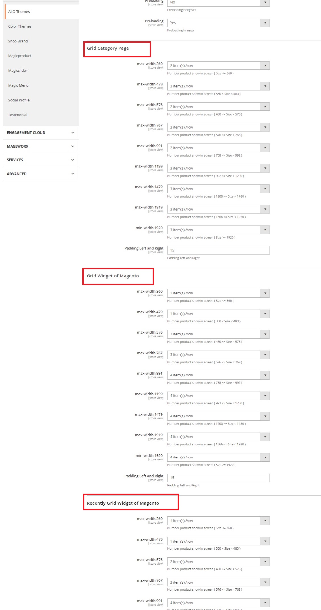 To config, manage Social Profiles, go to Admin > Magiccart > ALO themes > Configuration > Social Profile > Social Profiles as image below