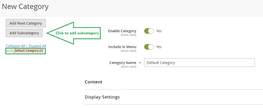 Note: that this new category has to be a descendant of the root category– it has tobe one level lower than the root category: